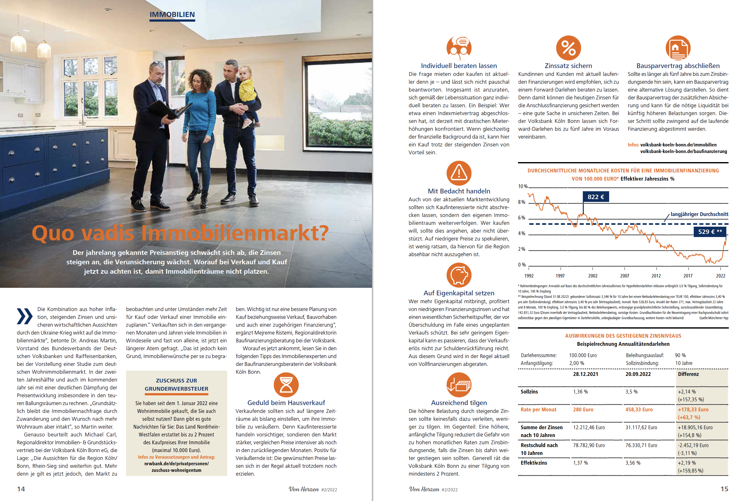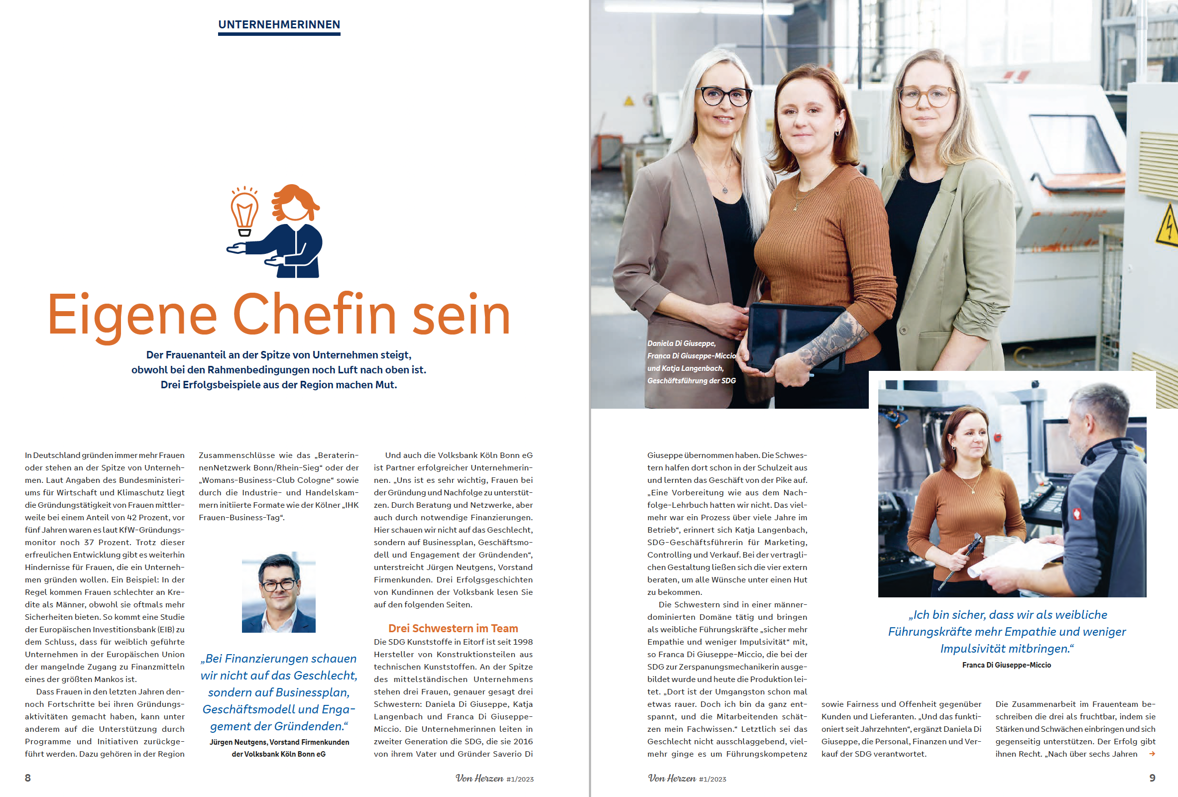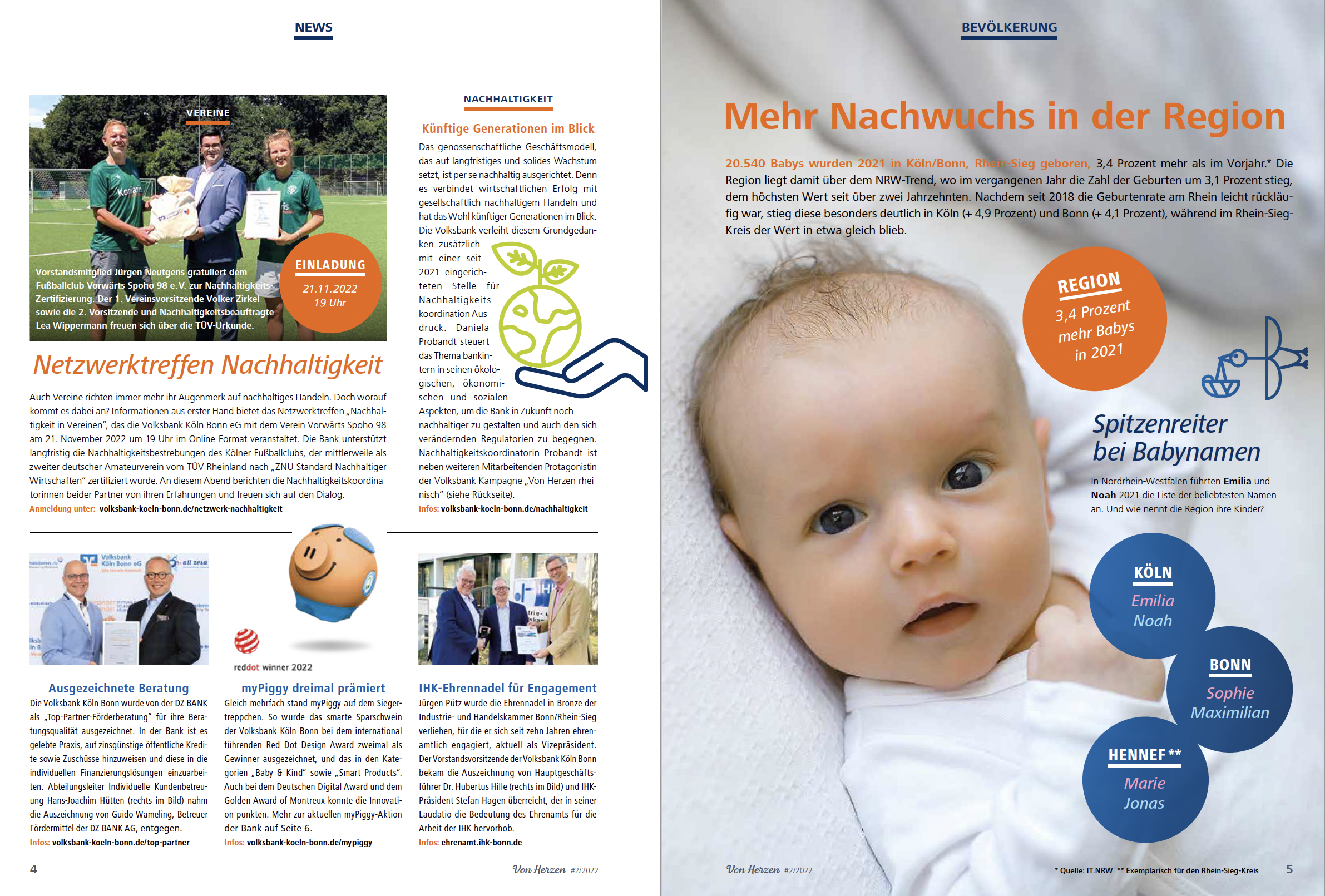 Seit 2012: Konzeption, Art Direction Produktion für das Mitgliedermagazin der Volksbank Köln Bonn. Mitglieder und Kunden werden zwei Mal jährlich über die Genossenschaftsbank, Finanzthemen sowie die Region informiert. VON HERZEN wird an alle Mitgliederhaushalte der Bank per Post geschickt. Darüber hinaus liegt das Magazin in allen Filialen der Bank aus und ist zudem als PDF-Version per E-Mail beziehbar.